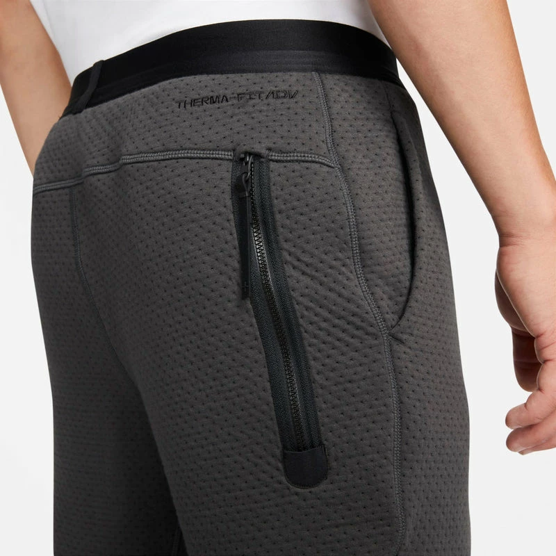 The Nike Sportswear Therma-FIT ADV Pants elevate a favorite fleece style with a technical design crafted for changing temperatures. This engineered Tech Fleece uses medium and fine quilted patterns to provide strategic warmth and ventilation where your body needs it most. A gusset and room through the hips and thighs help provide a comfortable feel. This product is made with at least 75% sustainable materials, using a blend of both recycled polyester and organic cotton fibers.