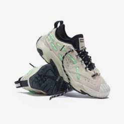 Puma introduces the PUMA Plexus sneaker, a new silhouette that looks towards the future of sneakers with a bold concept. Crafted with a mixed fabric upper that has rubber overlays at the toe box, the lightweight PUMA sneaker sports a distinctive lace construction with rope laces woven through the upper. Finished with a bold tooling, this Puma Plexus in an Eggnog-Elektro Green colorway takes inspiration from a seminal archive model.